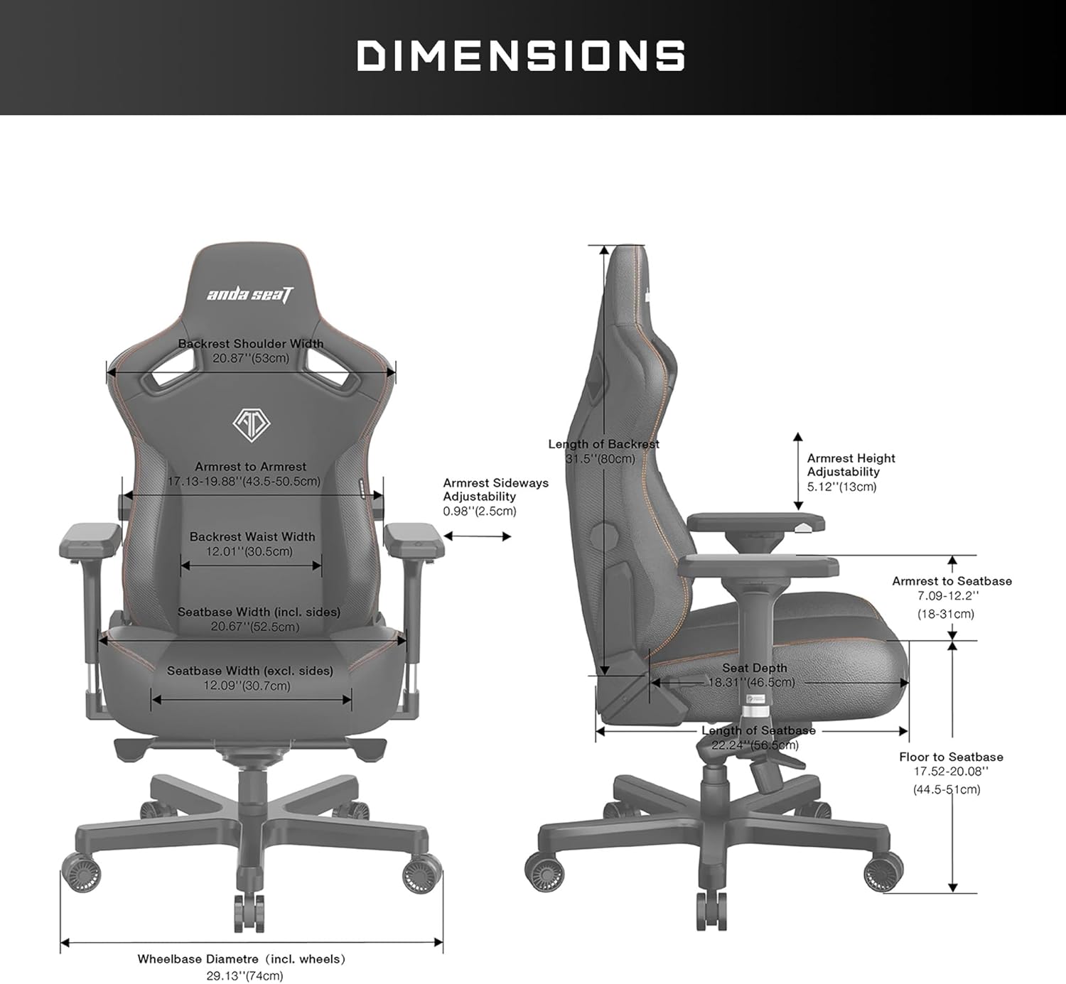 Anda Seat Kaiser 3 XL Gaming Chairs for Adults - Ergonomic Black PVC Leather Gaming Chair with Lumbar Support, Comfortable Office Seat with Neck Support - Heavy Duty Wide Gamer Seat