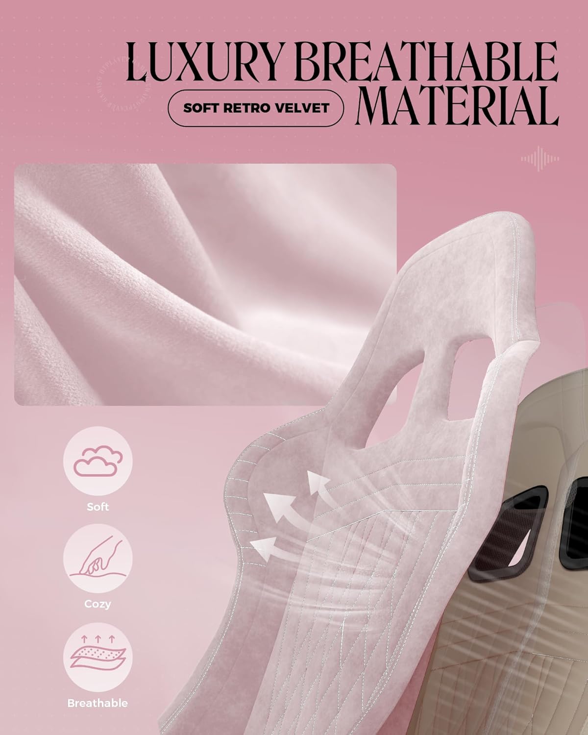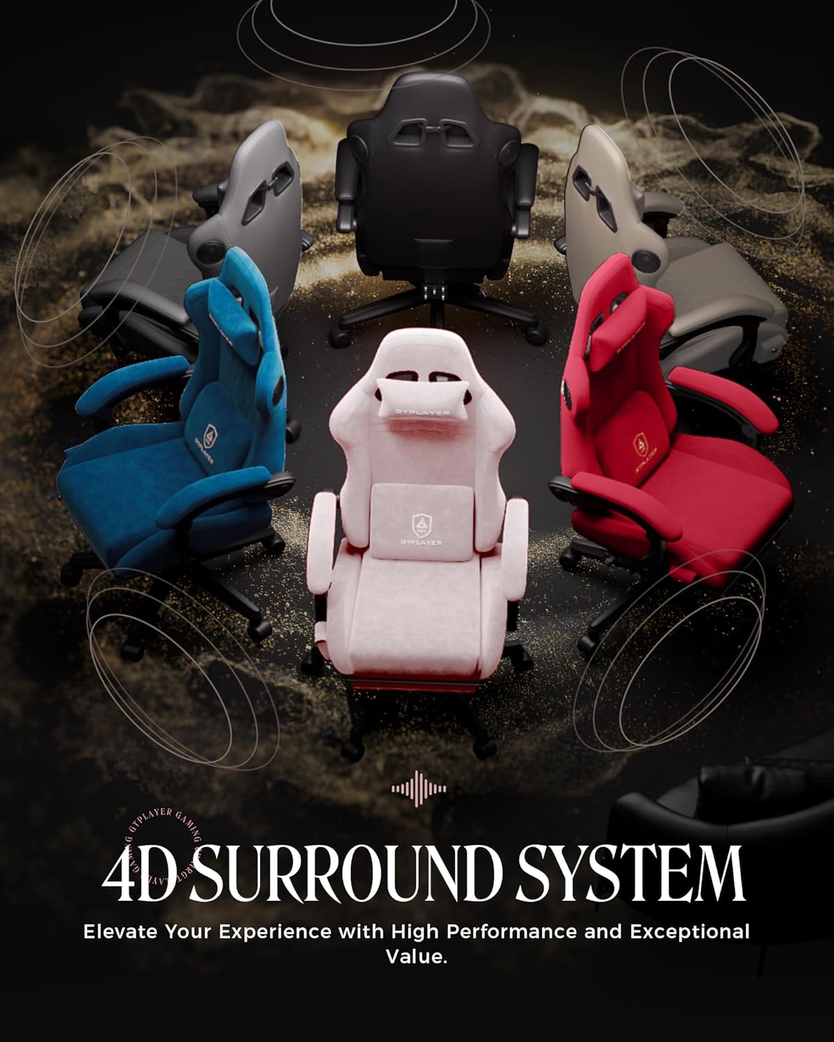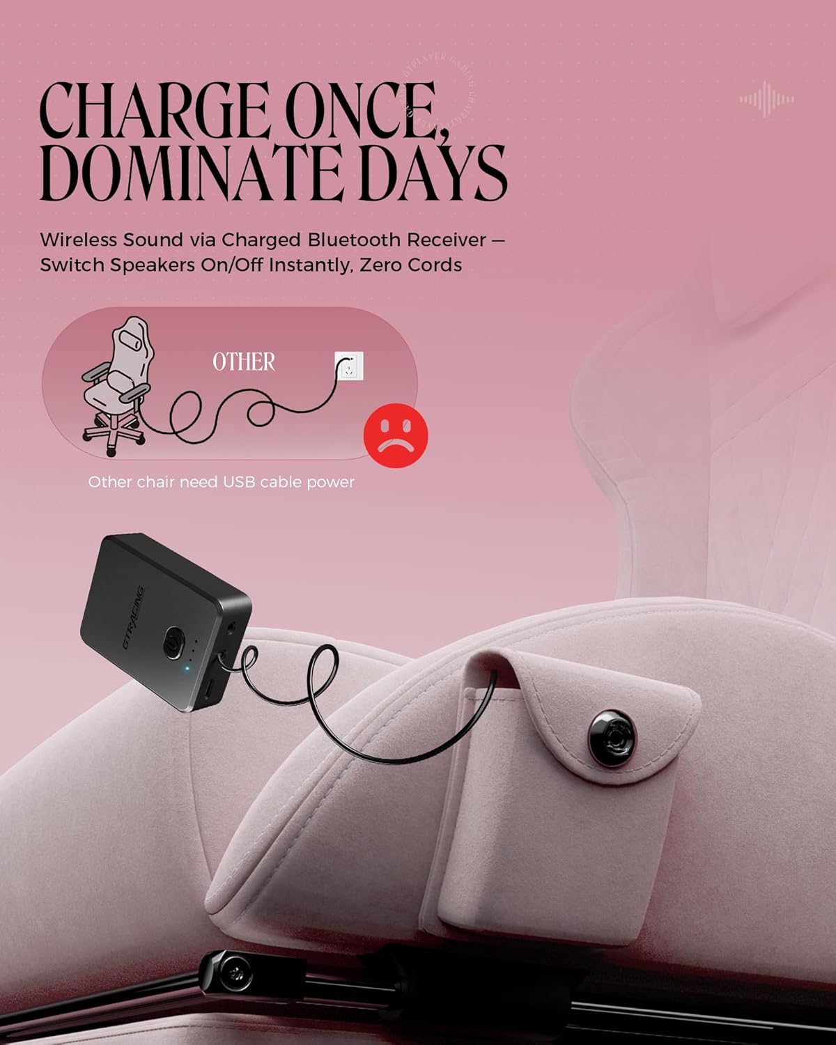 GTPLAYER Gaming Chair with Speakers, Video Game Chairs with Footrest, PC Gamer Chairs for Adults - Padded High Back Ergonomic Reclining Silla Gamer, Linkage Armrest, Ace Pro, Pink (Velvet)