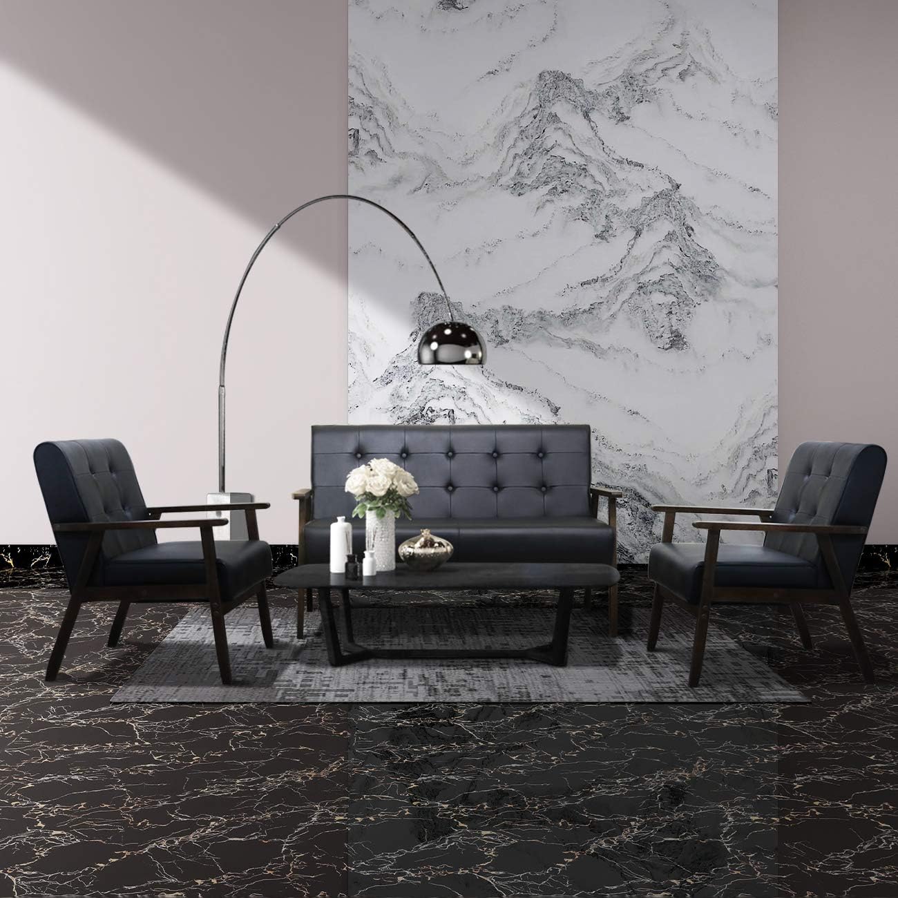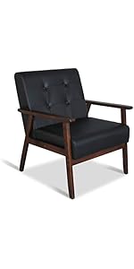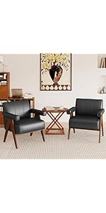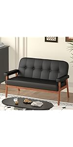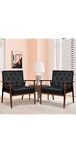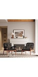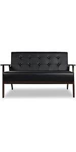 JIASTING Mid Century 1 Loveseat Sofa and 2 Accent Chairs Set Modern Wood Arm Couch and Chair Living Room Furniture Sets (8428 Black Set)