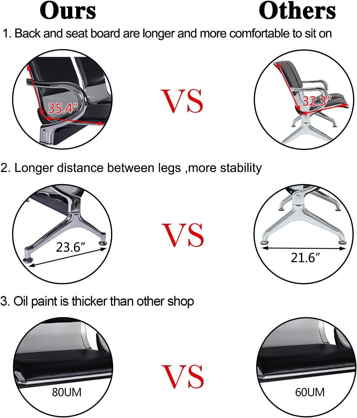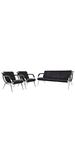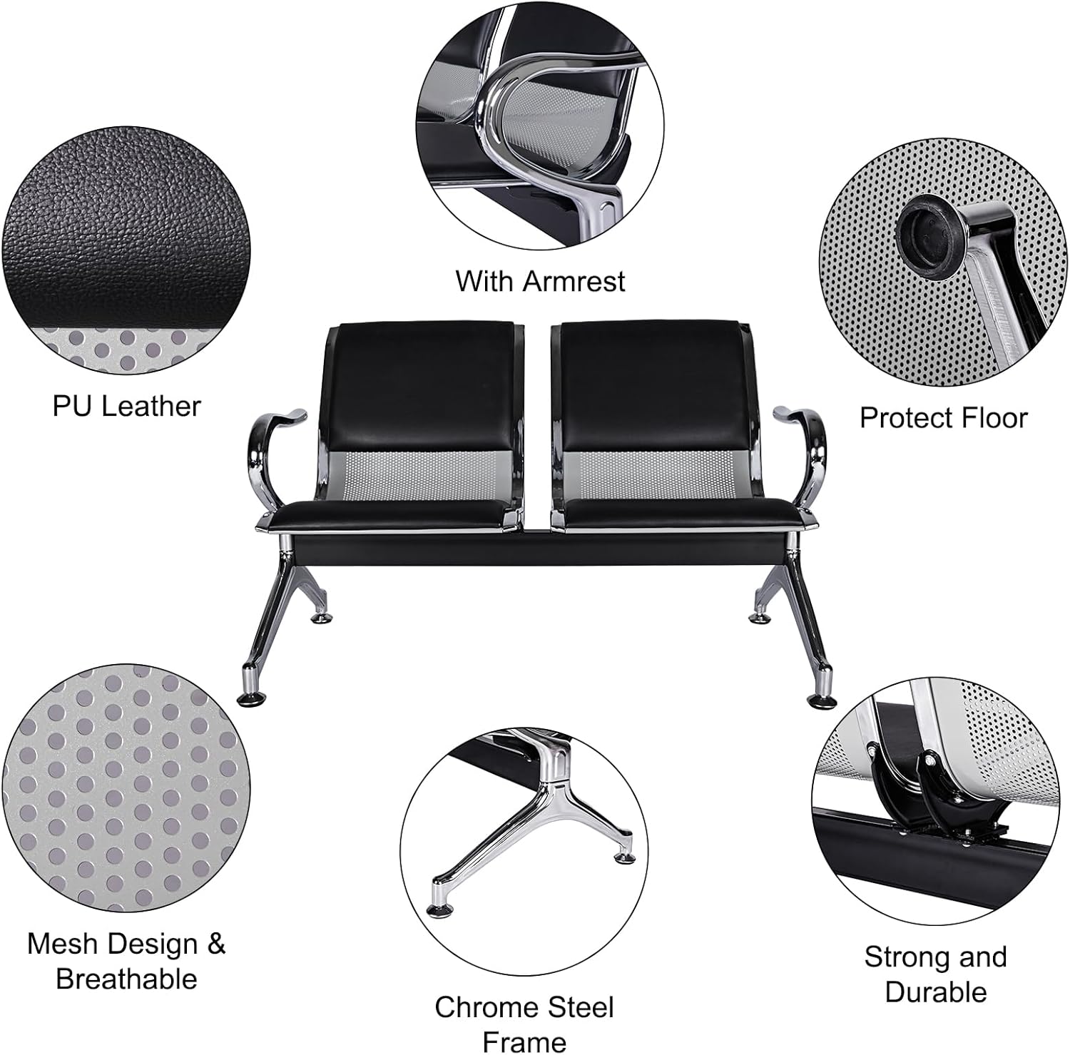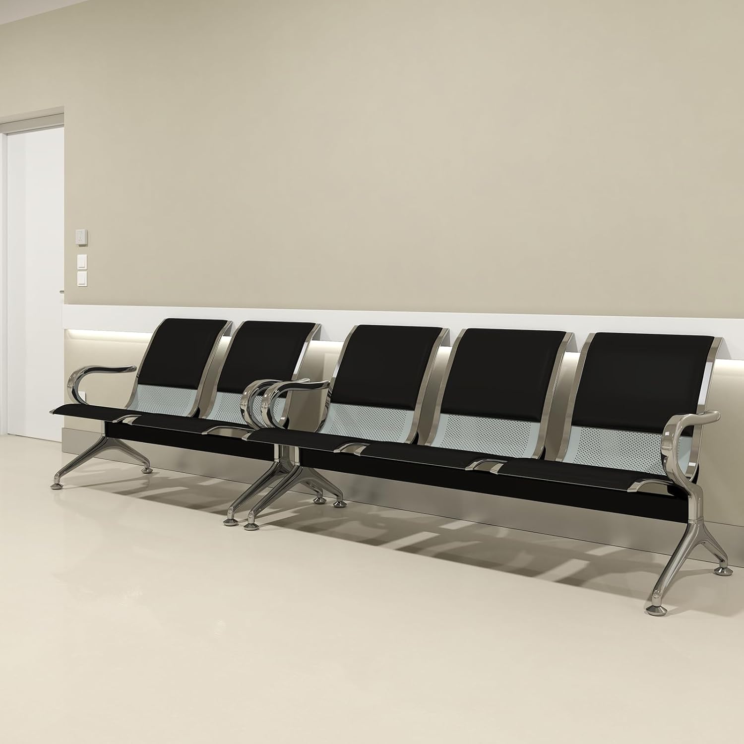 Kinfant 5-Seat Waiting Room Chairs Sofa Furniture - Office Guest Reception Chair with Armrest for Waiting Room Airport Hospital Bank (Black - PU+Mesh)